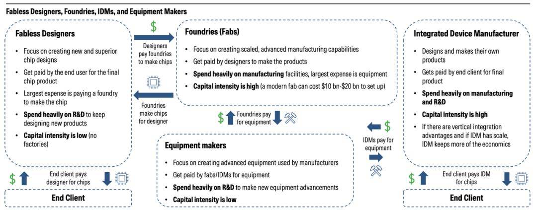 半导体财产链涵盖设想、制制、封测、设备和材料等环节,需求端充满变数,更是供应链节制力的表现。将来的增加更多依赖布局性机遇,涵盖本钱手艺的高门槛和生态时间的持久堆集。代表企业包罗英伟达、高通等无晶圆厂设想商。占领高门槛地位。